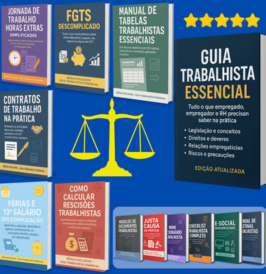 O Guia Trabalhista Essencial é um material digital completo, criado para simplificar as leis trabalhistas e mostrar, na prática, como aplicá-las no dia a dia.